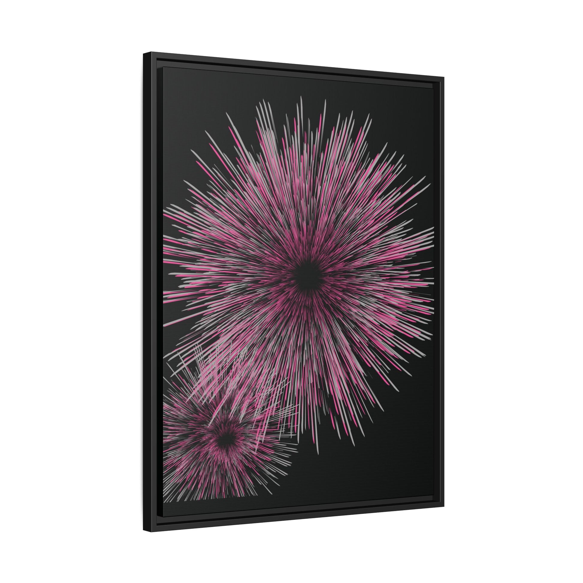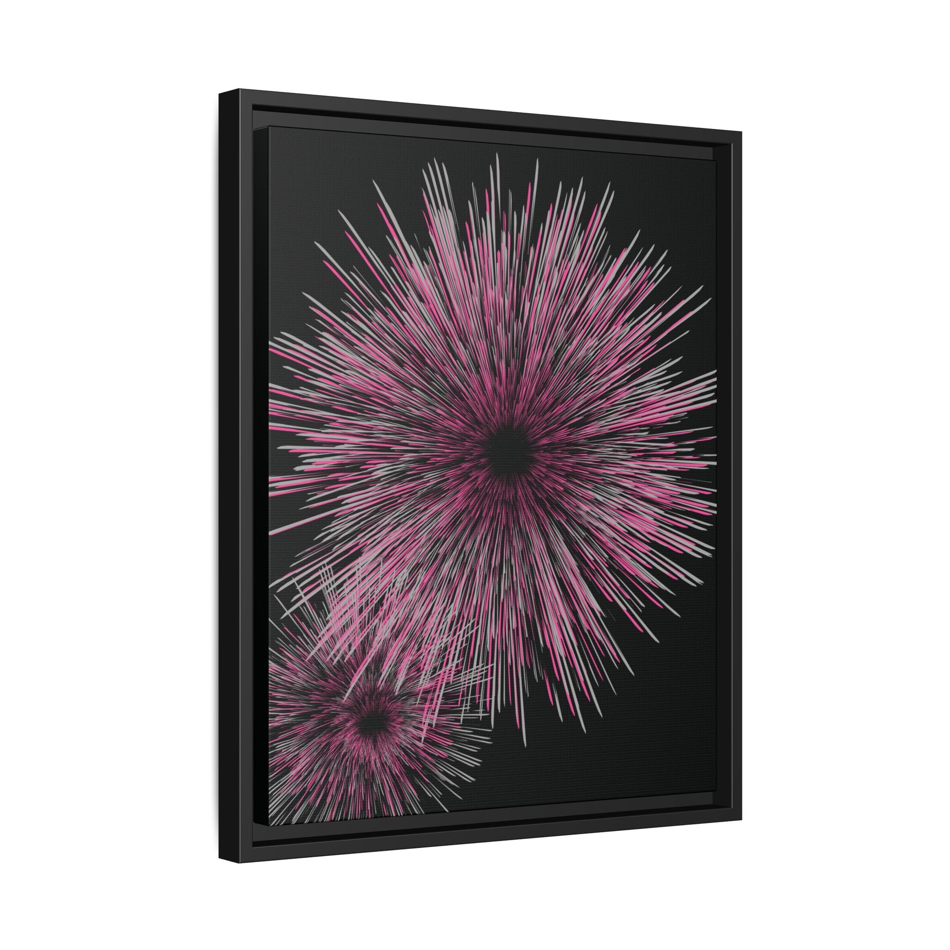 Featuring dual bursts of radiant pink, white, and magenta strokes against a deep black backdrop, this artwork captures the moment when a woman transitions from staying small to allowing herself to be seen. The layered strokes symbolize emerging strength, self-honoring, and the courage to grow even while being observed.
