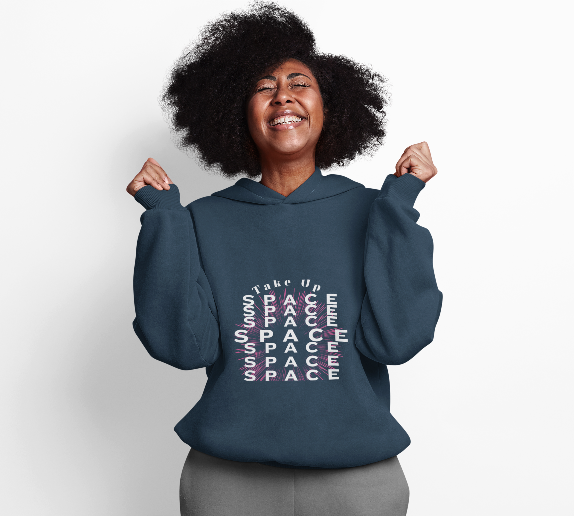 TThe “Take Up Space” Empowerment Hoodie from PLSH Lyfe Shop is more than a cozy staple — it’s an affirmation you can wear. Designed in deep charcoal gray with layered white-and-pink typography, this hoodie delivers softness, strength, and statement energy all in one.