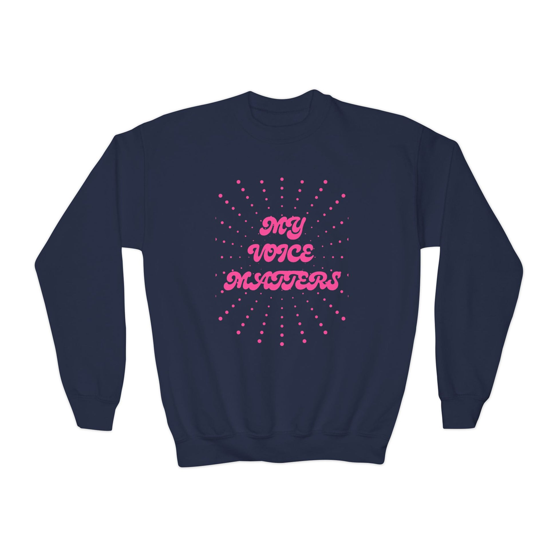 Youth Crewneck Sweatshirt — "My Voice Matters" Empowerment Pullover (Back: "so does yours!")